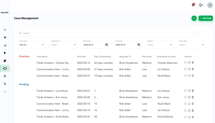 - Generate on-demand reports for SEC, FINRA, FCA, or internal committees
