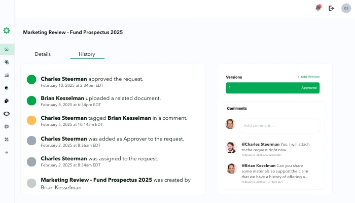 Speed up the marketing approval process without compromising compliance. Replace endless email chains with a streamlined marketing and advertising review workflow that unites marketing, legal, and compliance teams while ensuring regulatory adherence.